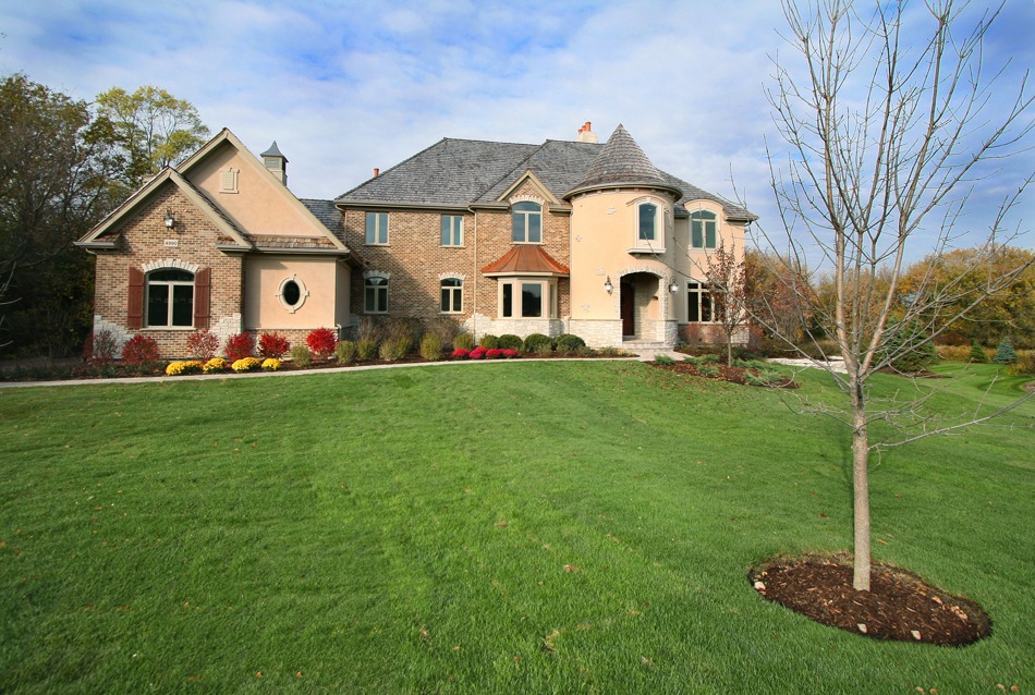 A two-story home at Meadowood Estates in Kildeer, off S. Kruger and Cuba Roads and located within Stevenson High School district #96. This home, on lot 16, features four bedrooms, three full baths, two half baths, large bonus room, 10-foot first-floor ceiling, lookout basement with fireplace, and 10-foot ceiling, family room with vaulted ceiling, oversized master suite, two laundry rooms, gourmet kitchen with large walk-in pantry, four-car garage, handsome brick, stone and stucco exterior, and 6,100 square feet.